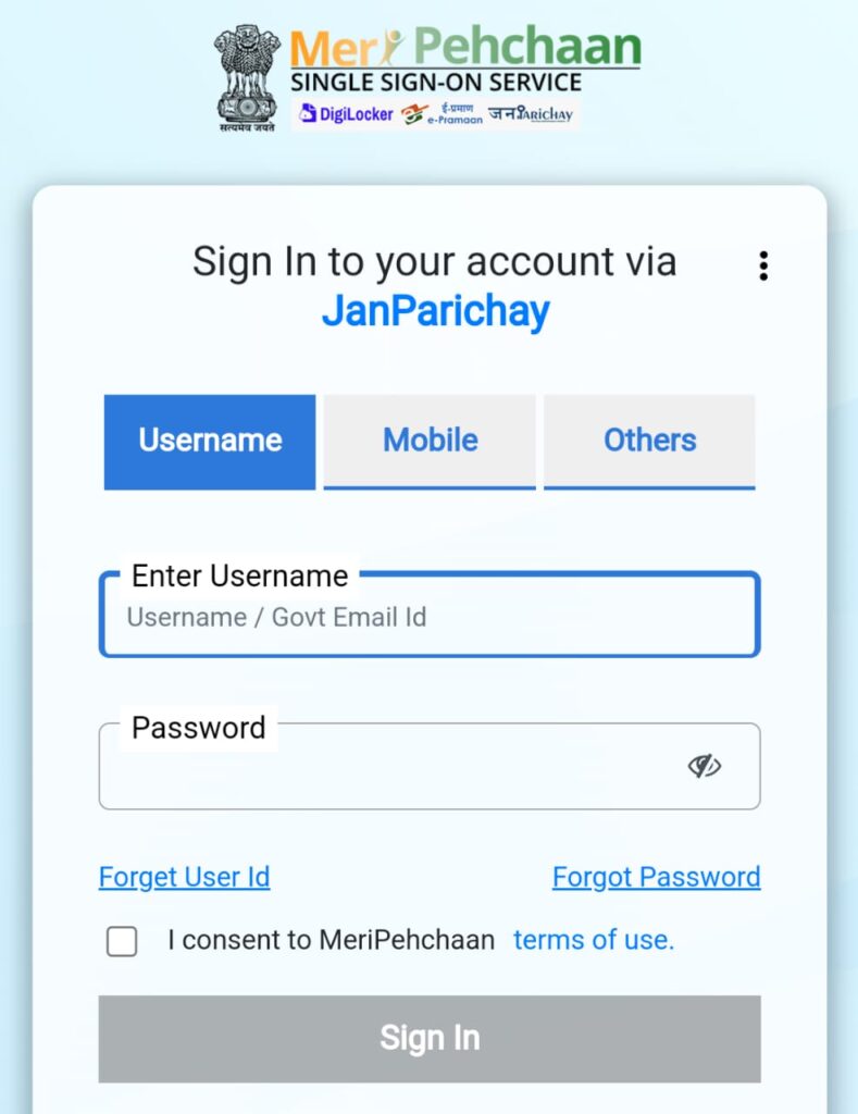 • “New User? Sign up for MeriPehchaan” पर क्लिक करें।