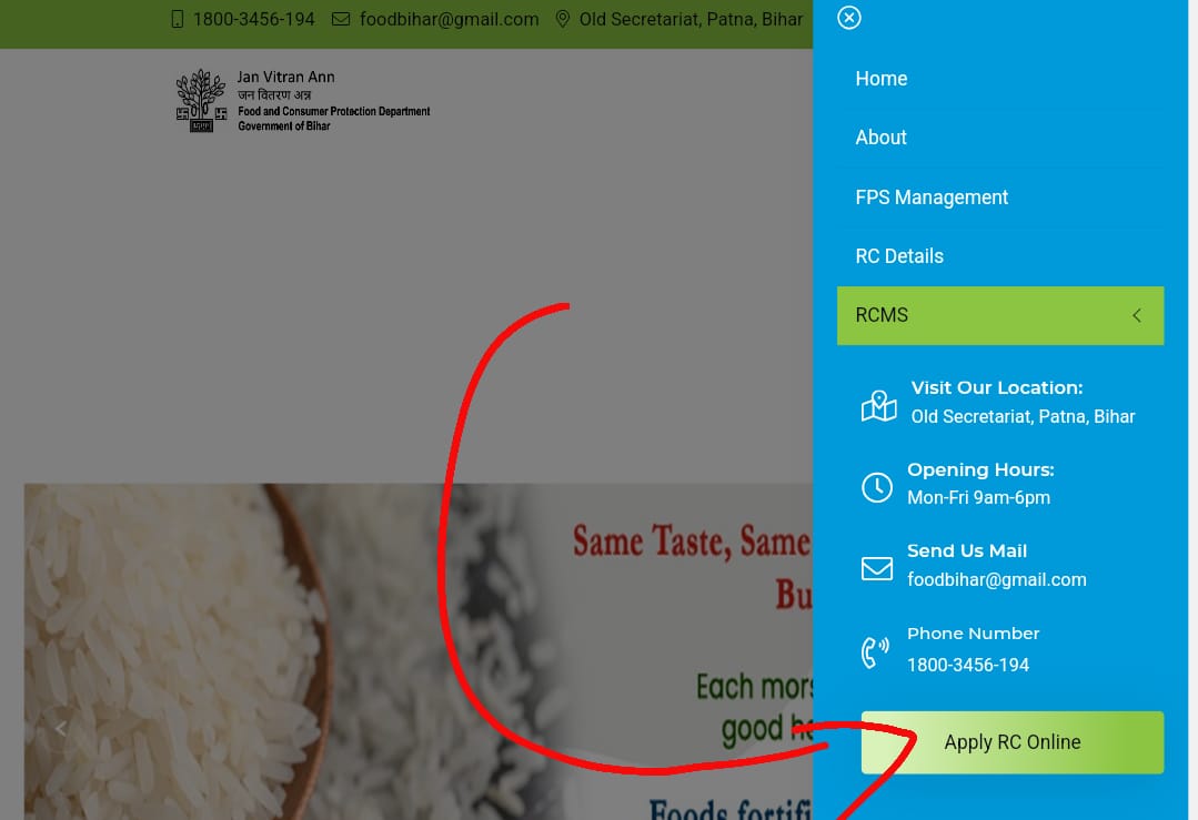 • बिहार सरकार के आधिकारिक पोर्टल rcms.bihar.gov.in पर जाएं।