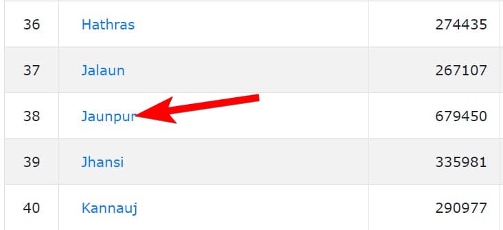 - वेबसाइट के पेज पर आपको उत्तर प्रदेश के जिलों के नाम दिखाई देंगे। यहाँ पर आपको जौनपुर जिला का चुनाव करना होगा।