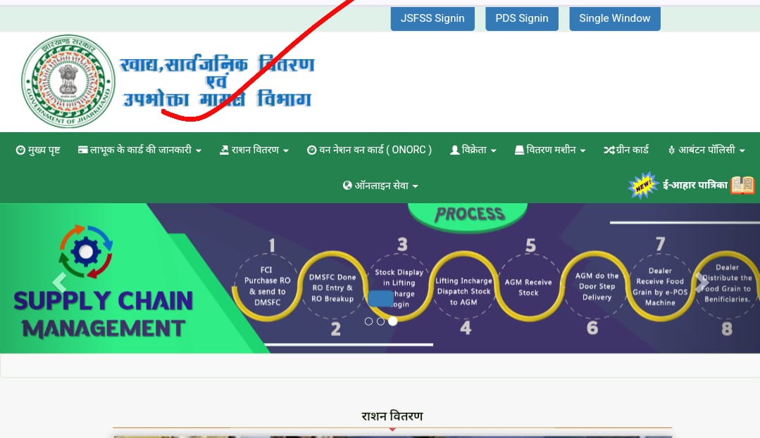 - सबसे पहले, झारखंड सरकार के खाद्य आपूर्ति विभाग की वेबसाइट (aahar.jharkhand.gov.in) पर जाएं।