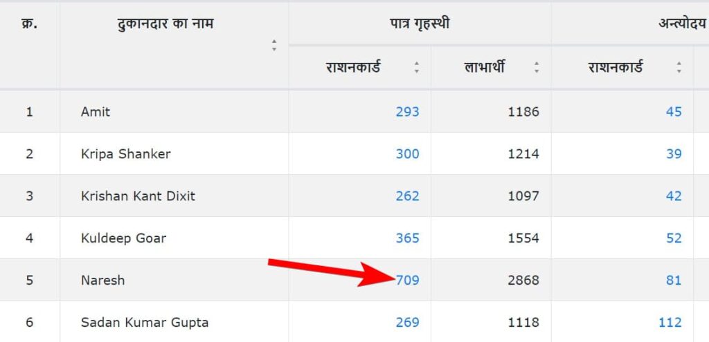 - राशन कार्ड संख्या पर क्लिक करते ही कानपुर देहात की राशन कार्ड सूची आपके सामने निकल कर आ जाएगी। इस सूची में आपको अपनी राशन कार्ड संख्या के ऊपर क्लिक करना होगा।