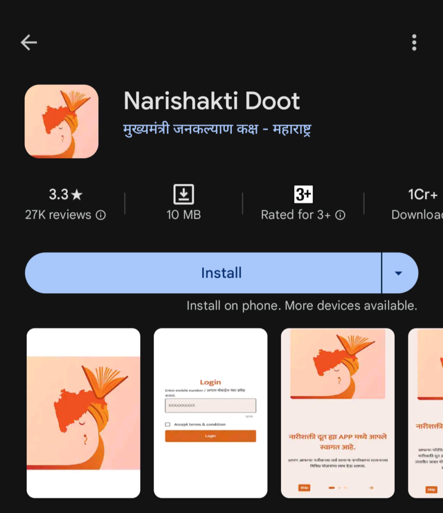 - मोबाइल से माझी लड़की बहिन योजना के लिए आवेदन करने के लिए Google Play store से नारीशक्ति दूत ऐप डाउनलोड करना हैं।