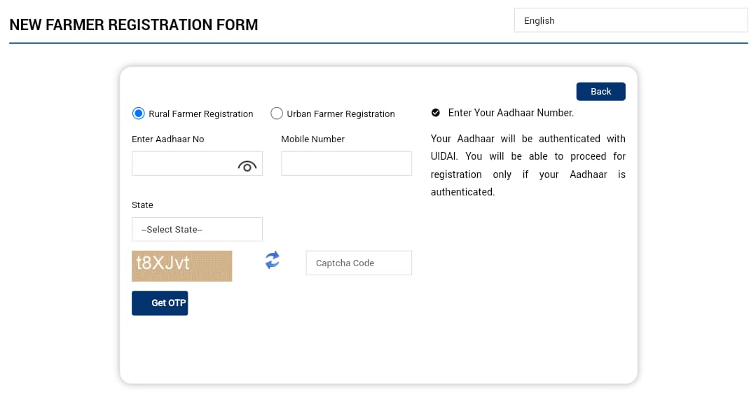 “न्यू फार्मर रजिस्ट्रेशन” पर क्लिक करके, आधार और अन्य आवश्यक जानकारी भरें। OTP के जरिए सत्यापन और आवश्यक दस्तावेज अपलोड कर आवेदन प्रक्रिया पूरी करें।