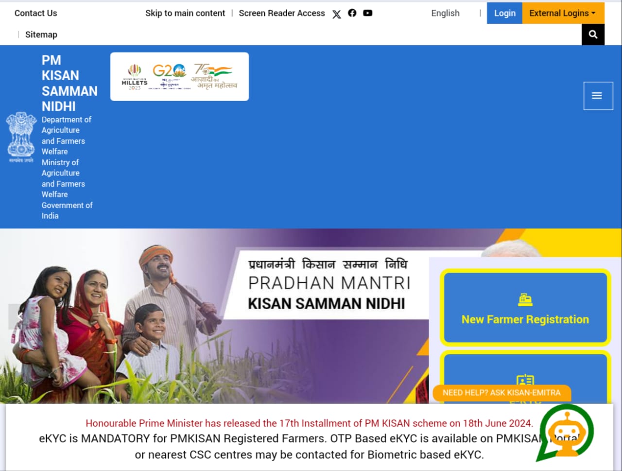 - सबसे पहले, PM किसान के आधिकारिक पोर्टल पर जाएं।