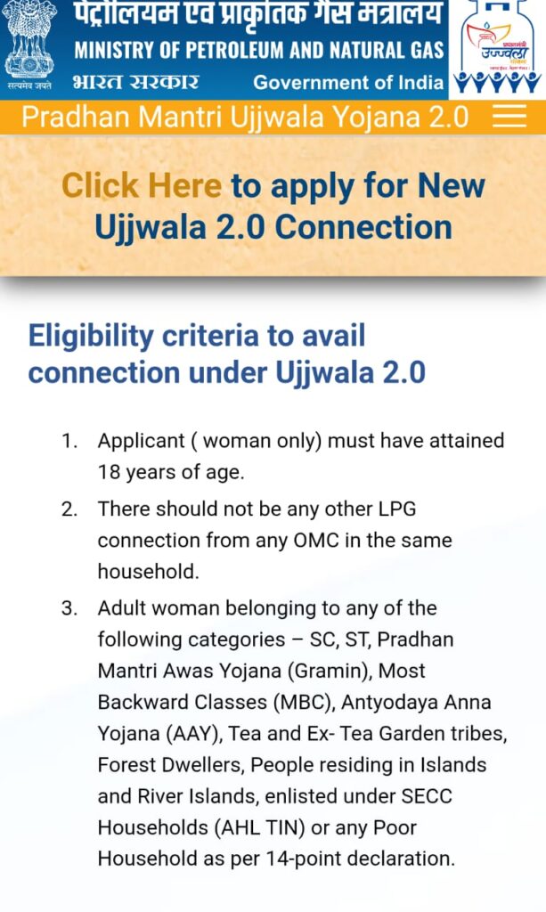 उज्जवला गैस कनेक्शन के लिए कौन पात्र है?