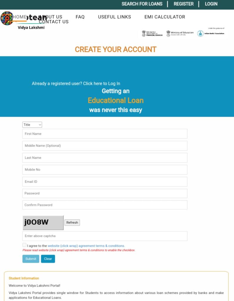 - सबसे पहले Vidya Lakshmi Portal की आधिकारिक वेबसाइट पर जाएं।