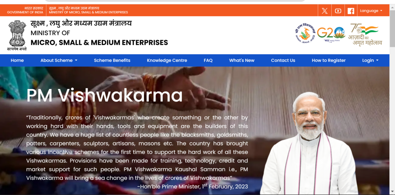 आधिकारिक वेबसाइटwww.pmvishwakarma.gov.in