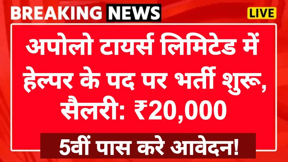 अपोलो टायर्स लिमिटेड में हेल्पर के पद पर भर्ती शुरू, 5वीं पास कर सकते हैं आवेदन!